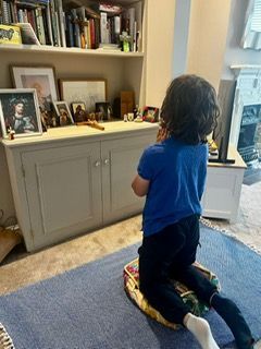 Any time that the family feels called to pray together! The best times to pray would when it is quiet, such as early Morning Prayer or Bedtime Prayer. Every family’s routine is different and you will work out what suites your family best. I have friends with a young-teen family who start off their day with prayer at 7:30 am. At their family altar, they begin with morning prayers. These are then followed by one of the children reading the gospel of the day out loud. They then meditate on that Gospel and share what it means to them. Only those who want to will speak. Then they will be encouraged to pray aloud with mum/dad starting: this often results in intercessory prayer. During their Bedtime Prayers, the Rosary is prayed in the children’s bedroom. Some children will fall asleep while others can make it right to the end!