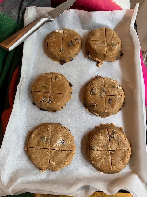 I found the recipe below on YouTube which uses wheat, spices and it doesn’t use alcohol - so very child friendly. Of course, you can make these to your own taste. When I tried making them, I added freshly ground cardamoms and turmeric to the mixed spice. I also used honey instead of sugar and einkorn flour instead of all-purpose flour. Einkorn flour is an ancient grain. The photos below are of my homemade soul cakes!